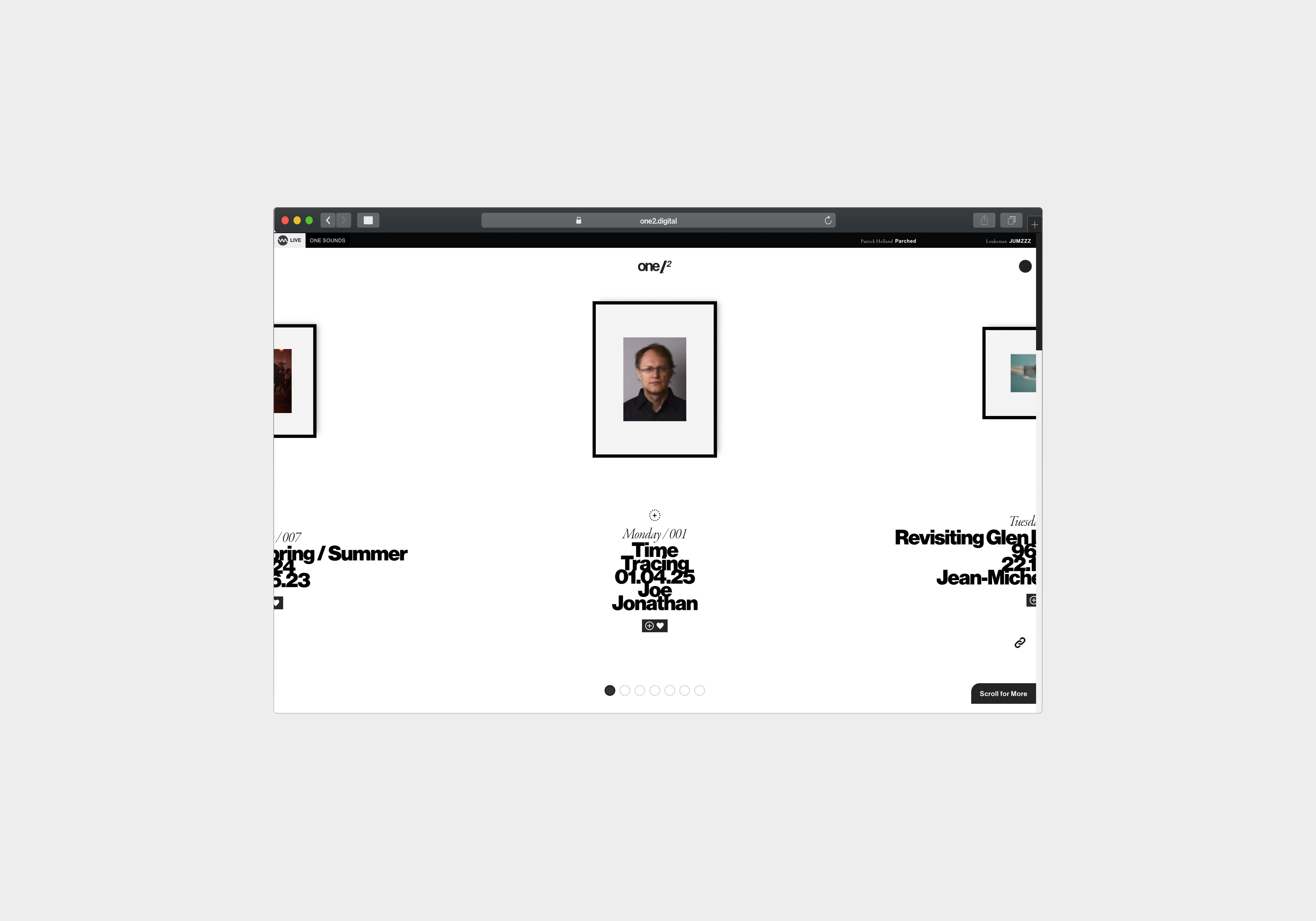 one/² is an independent publication focused on playful imagery and compelling storytelling throughout contemporary culture. The design framework of the digital publication represents a progressive approach to visual culture, with the structural dynamism a reflection of the intent to fascinate audiences through flowing page structures, succinct animations and captivating imagery. one/² presents media beyond the boundaries of the screen and recontextualises traditional media formats across a digital eco-system.